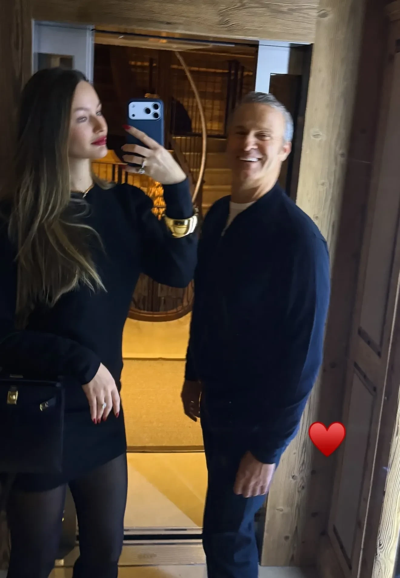 На фото Романова и Доронин позируют перед ужином в ресторане. В честь праздника модель надела короткое чёрное платье, золотой браслет, украшения с бриллиантами и шубу, дополнив образ красной помадой и сумкой Hermes. Она также показала интерьер отеля, в котором остановилась пара, фото в горнолыжных костюмах, праздничный стол с чёрной икрой и подарок от возлюбленного — большой букет красных роз.