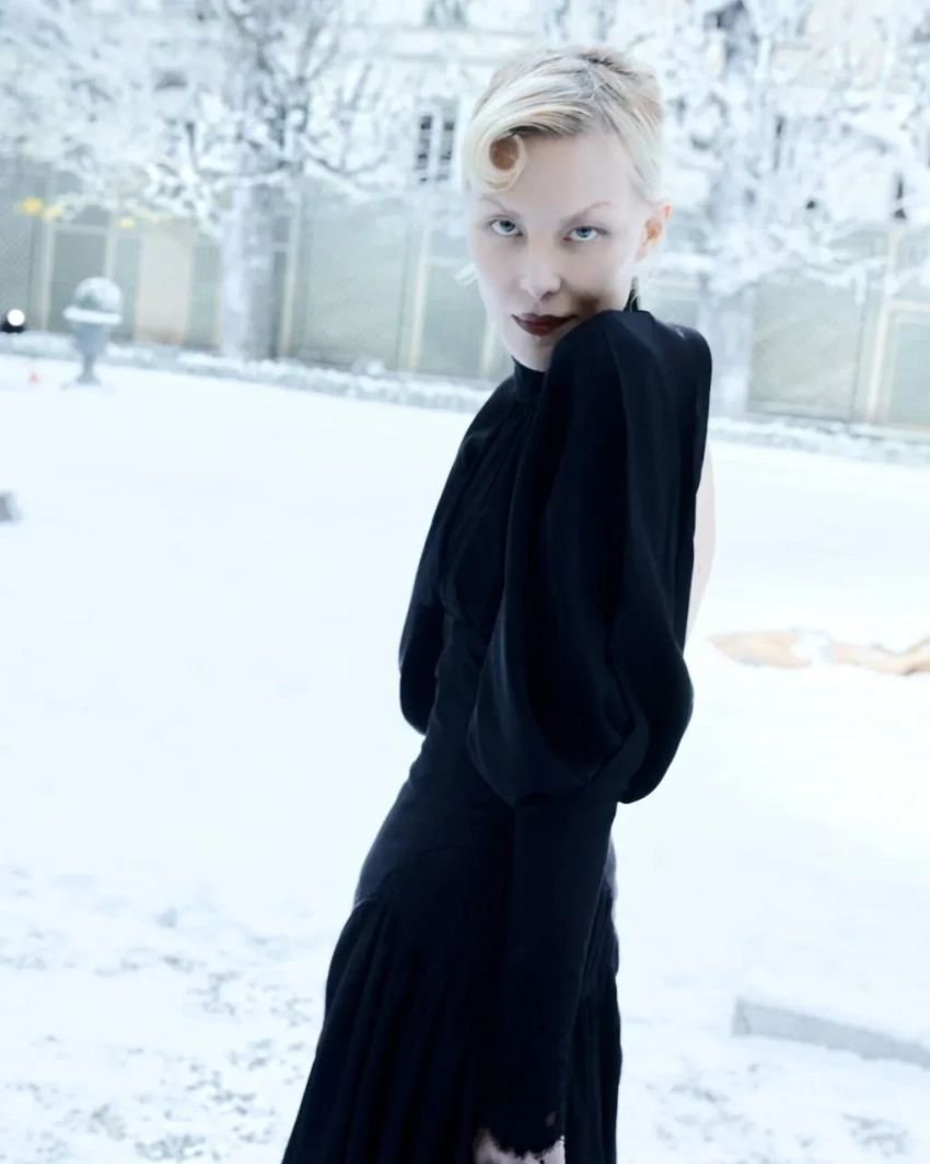 На шоу Ann Demeulemeester Литвинова пришла с каре и в чёрном платье с шубой, а на показ Jean Paul Gaultier нарядилась в винтажный плащ Paco Rabanne. На шоу Enfants Riches Déprimés, где ранее актриса выходила на подиум, она пришла в длинном чёрном платье.