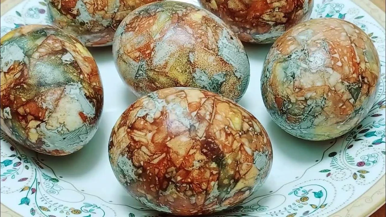Два способа сделать зеленые «мраморные» яйца на Пасху