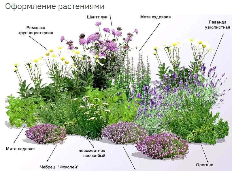 Декор и посадка. Разместите растения по высоте: высокие — в центре или на заднем плане, низкие — по краям. Между валунами можно посадить почвопокровные растения.