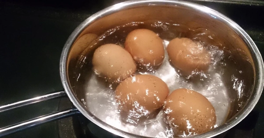 Варка: Положите яйца в кастрюлю и залейте холодной водой так, чтобы она покрывала их на 2–3 см. Доведите до кипения, снимите с огня и оставьте на 8–12 минут в зависимости от размера яйца и желаемой степени готовности.