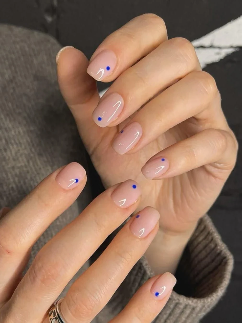 Точечный дизайн на коротких ногтях напоминает маленькие украшения. Крошечные элементы добавляют маникюру изящества, но при этом не делают его перегруженным.