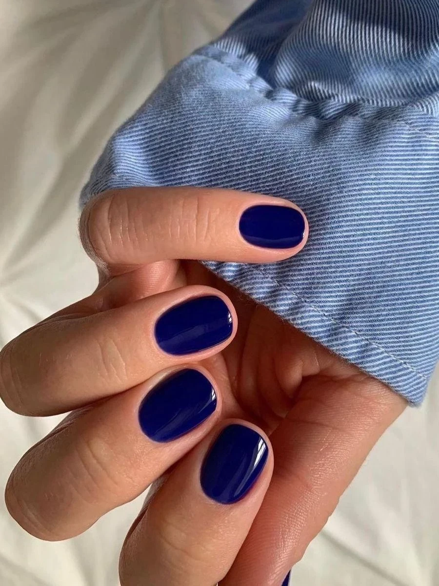 Темные оттенки лака на коротких ногтях выглядят особенно благородно. Глубокий цвет создает плотный фон, подчеркивает форму руки и делает маникюр аккуратным.