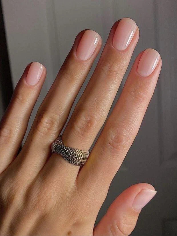 Лучше всего смотрится короткий овал или мягкий квадрат. Поверхность должна быть идеально ровной, а финиш — глянцевым или деликатно полуматовым. Оттенок подбирают максимально близко к тону кожи: от молочного до бежево-розового.