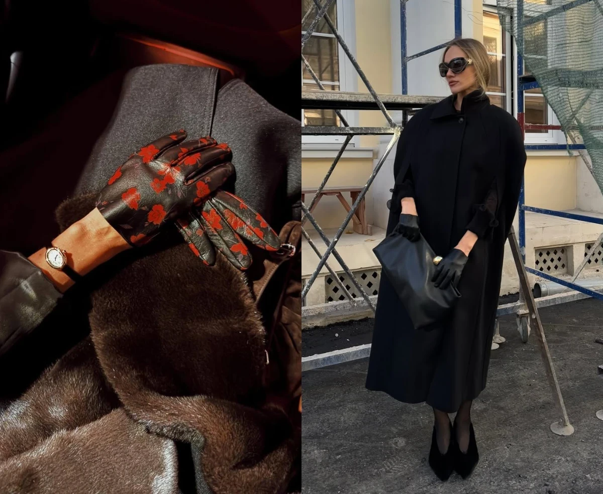 • Играйте с объемами: сочетайте перчатки с объемными рукавами пальто, свитеров или курток. Контраст текстур и форм создаст выразительный современный образ.