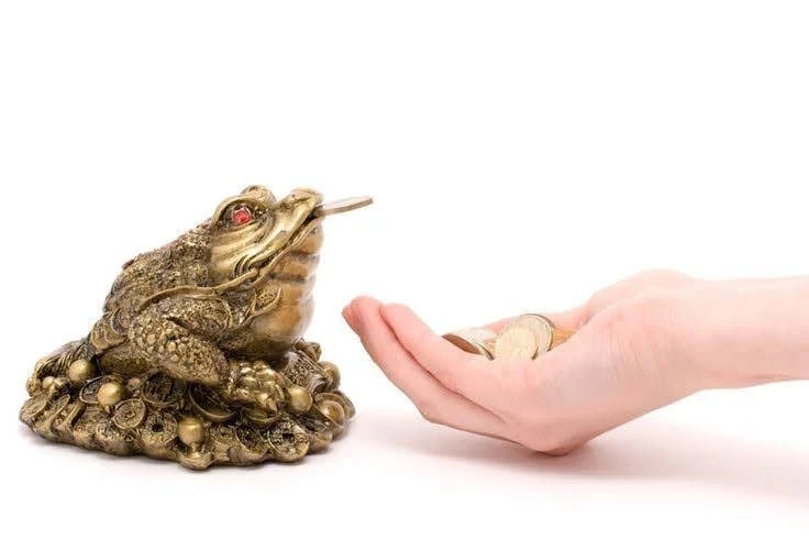 • символы богатства — монетки, фигурку лягушки с монетой, кораблик с парусами;