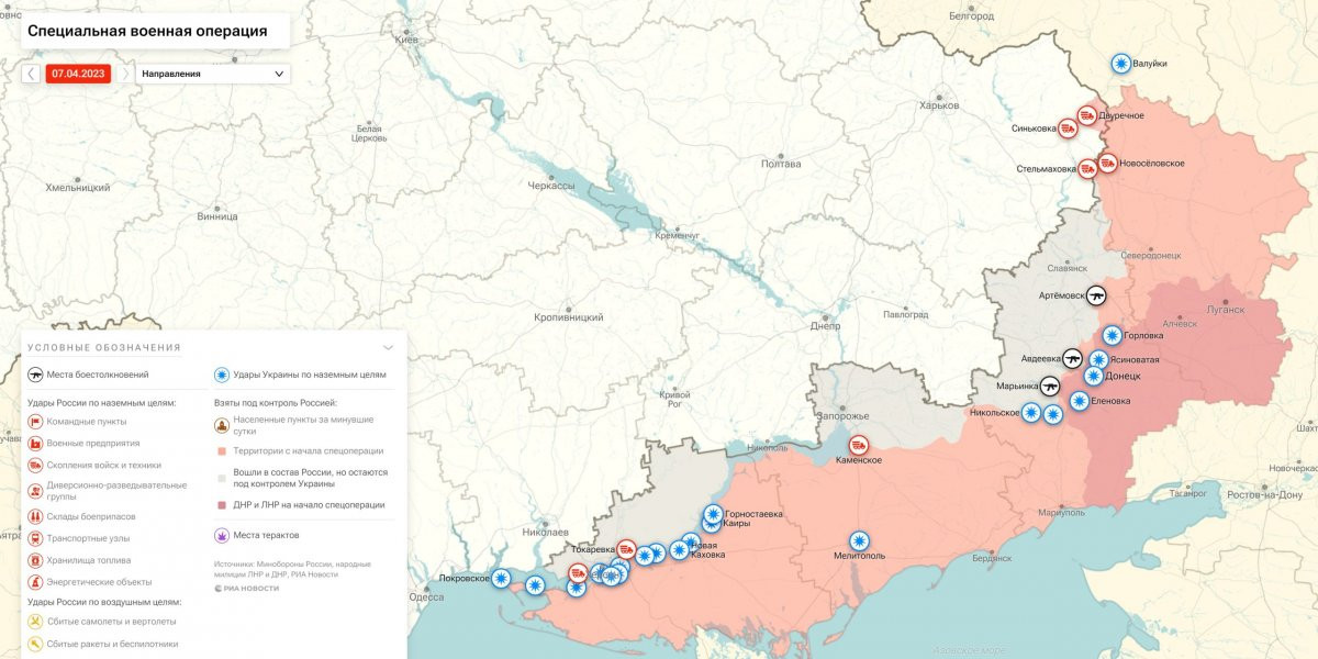 Карта военных действий на Донбассе сегодня 7 апреля: граница фронта, места боёв и обстрелов на сегодня 07.04.2023, обстановка в ЛНР и ДНР