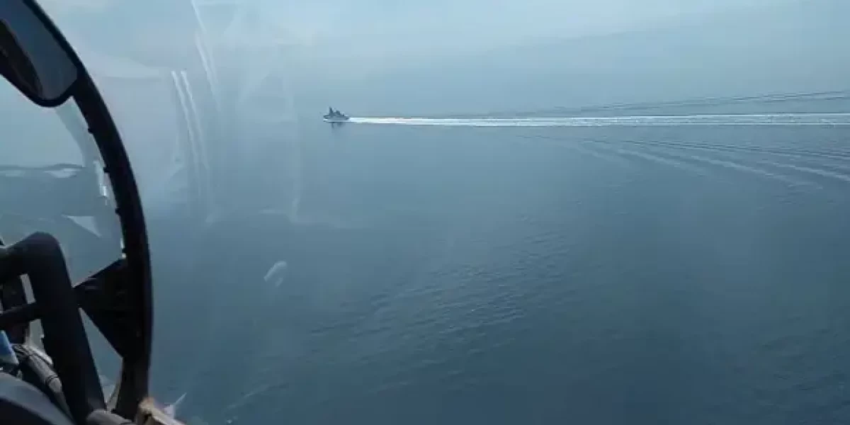 Российская сторона утверждает, что сторожевой корабль был вынужден сделать предупредительные выстрелы, а самолеты Су-24 произвели бомбометание по курсу эсминца.