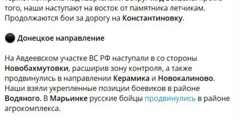В Артёмовске движение замедлилось, потому что противник ввёл новые элитные резервы, которые стабилизировали ситуацию в районе жд вокзала. В Авдеевке после прорыва первой линии в субботу вижу изменения тактики: мы не пытаемся быстрее ломать вторую и третью линии, то есть не спешим, избегаем потерь, что сильно отличается от концепции наступления, которая была пару месяцев назад. Интенсивно работает наша авиация на южном направлении, выбивая резервы, склады. Один из представителей командования ВСУ в интервью сказал, что Россия каждый день применяет здесь 20 тяжёлых планирующих бомб – защиты от этого нет.