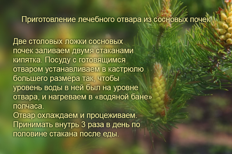 Так же как и березовые почки, сосновые собирают ранней весной. В это время они богаты витаминами, эфирными маслами, смолистыми и дубильными веществами. Сосновые почки могут использоваться при лечении различных заболеваний, в частности, органов дыхания и вирусных инфекций. Отвар из сосновых почек используют для укрепления иммунитета.