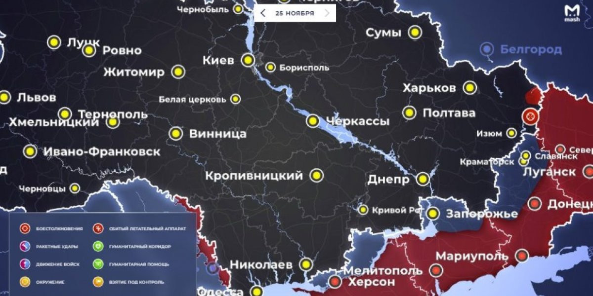 - Последняя обновленная карта военных действий на Украине сегодня, 25 ноября 2022
