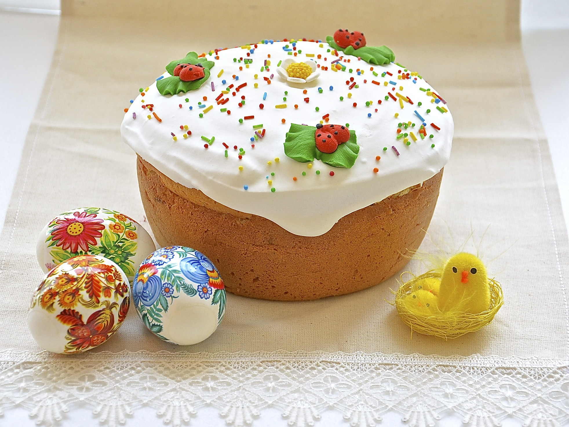 После того, как куличи будут готовы, их следует достать из духового шкафа и дать им остыть. Покрыть глазурью и посыпать кондитерской посыпкой. А разрезать лакомство и есть его лучше уже на следующий день.