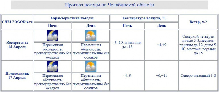 В воскресенье, 16 апреля, морозную ночь в Челябинской области сменит тёплая погода, но немного подпортит день сильный порывистый ветер. Об этом сообщается на сайте регионального Гидрометцентра.