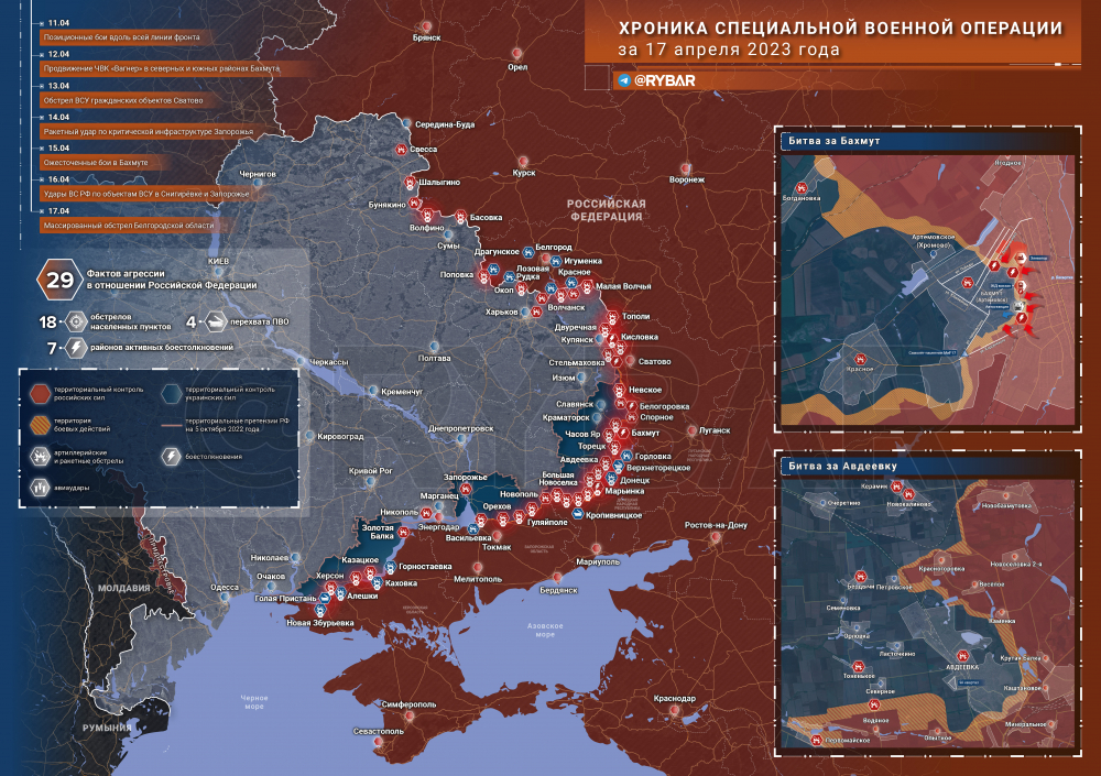 Хроника специальной военной операции за 17 апреля 2023 года от Телеграм-канала «Рыбарь»