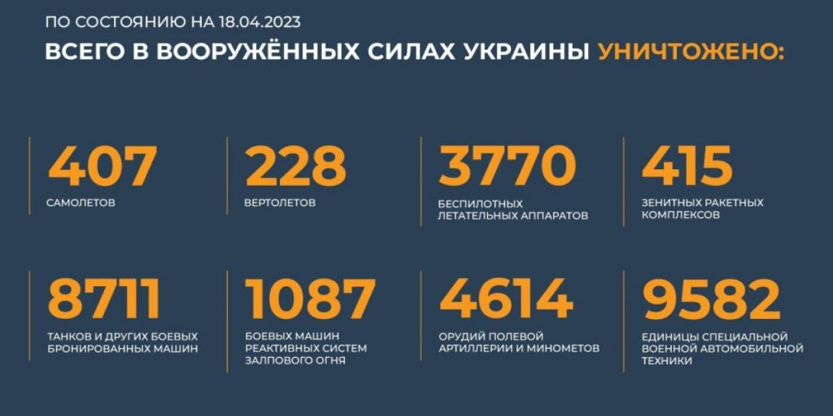- Минобороны России распространило сводку за вторник 18 апреля: