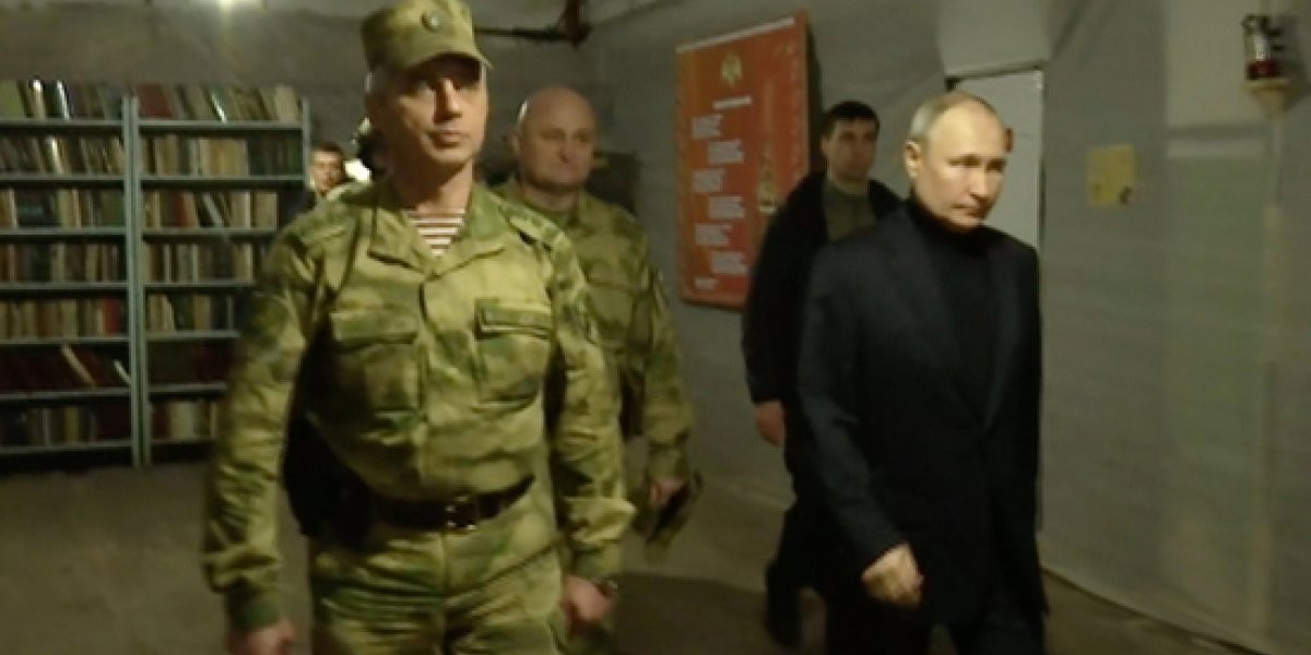 Опубличенный хронометраж поездки Путина в зону СВО не превышает 5 минут. Ролик, выложенный на ресурсах Кремля, композиционно состоит из прибытия президента на военный аэродром в Херсонской области, переезда на иномарке синего цвета в штаб группировки «Днепр», краткого общения с военными, перелета в Луганскую область и приветствия в штабе национальной гвардии «Восток».