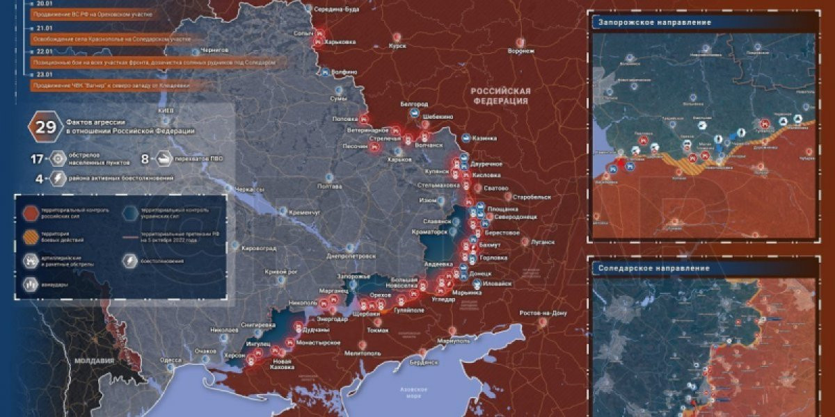 - Свежая карта боевых действий на Украине на сегодня 24.01.2023. Спецоперация РФ на Украине, день 335-й