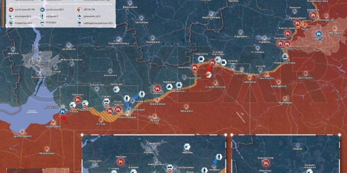 - Наступление широким фронтом осложнено проведением ВСУ дистанционного минирования кассетными боеприпасами М 73. Военнослужащие ВС РФ проводят локальные вылазки на украинские рубежи, наводя артиллерию на огневые позиции.