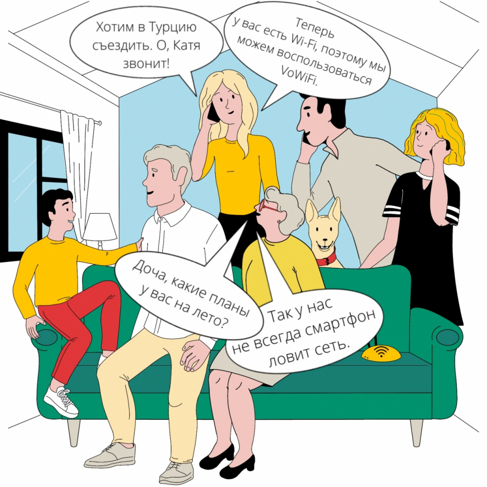 Многим может быть знакома ситуация, когда не получается позвонить из-за слабого сигнала в цоколе, за городом и в помещении с толстыми стенами. Или, например, нужно быть на связи, находясь в поездке по России или отправляясь в путешествие в другую страну, и при этом не переплачивать даже в роуминге при звонках в домашний регион. В этом случае использовать для звонков и отправки СМС-сообщений можно Wi-Fi-роутер. В прошлом году Билайн запустил звонки по Wi-Fi, или, иначе, VoWiFi*. Эта технология помогает людям поддерживать связь с близкими и решать рабочие вопросы, используя интернет-сеть. Смотрите, как это все работает в нашем комиксе.