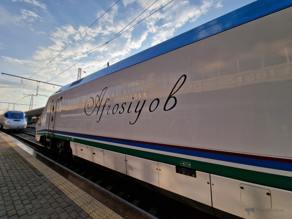 Мы покидаем столицу Узбекистана на скоростном поезде Afrosiyób (Афрасиаб), названного в честь древнего городища, расположенного в северной части современного Самарканда.