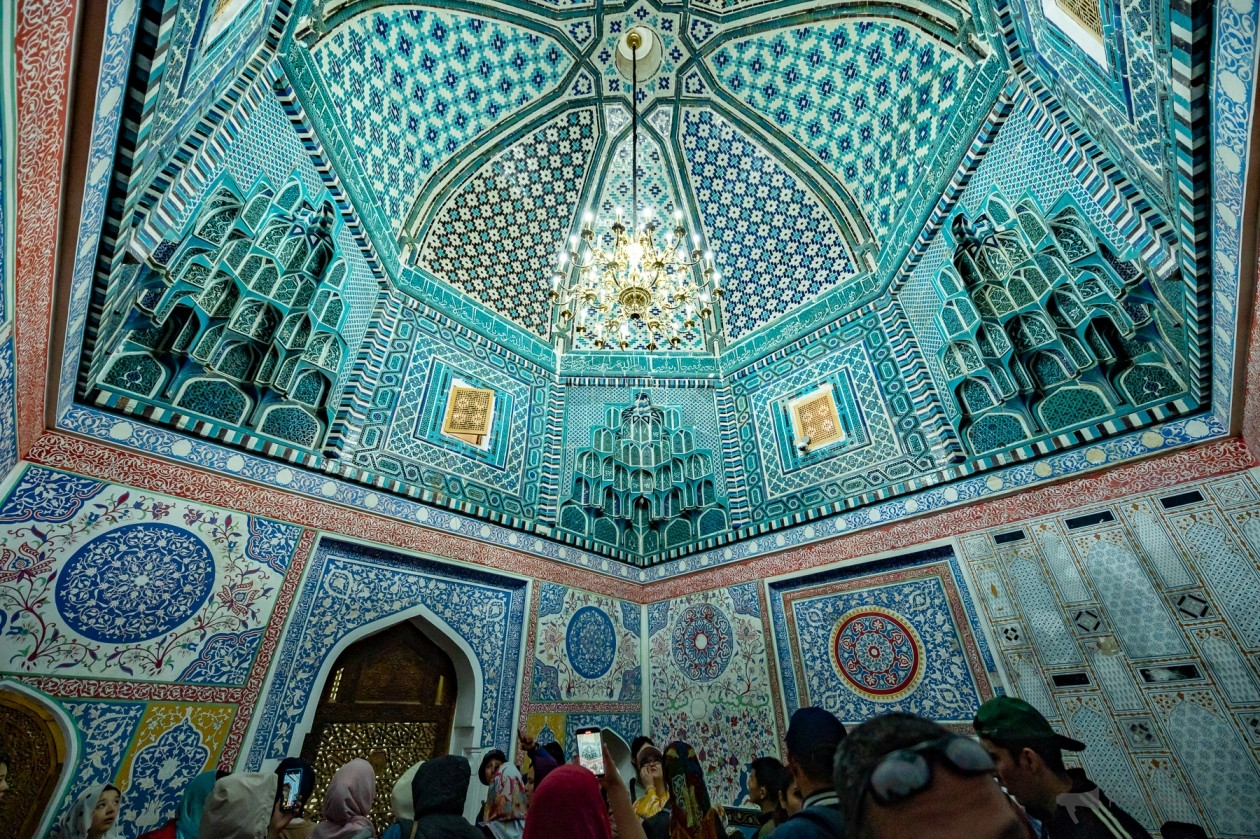Во внутреннем дворе одного из медресе есть большая сувенирная ярмарка, а также замечательные виды для туристов и блогеров (особенно если подняться на второй этаж).