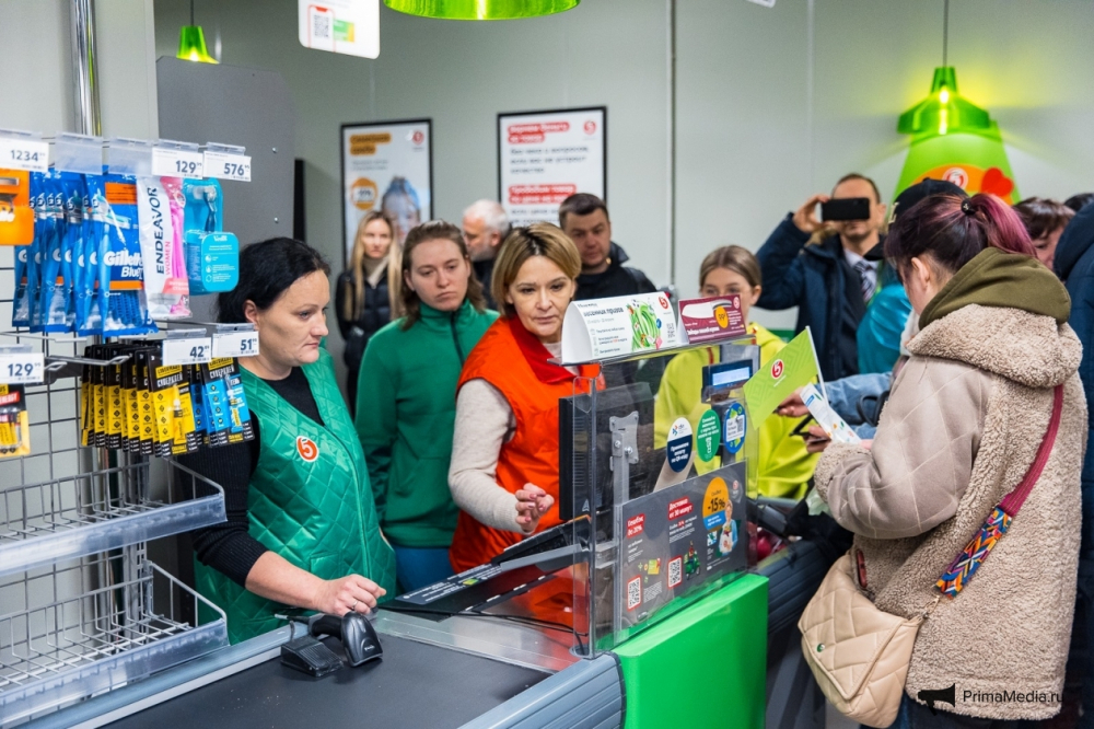 Генеральный директор сети “Пятёрочка” Владислав Курбатов в ходе открытия первого магазина во Владивостоке. Фото: Илья Аверьянов, ИА PrimaMedia