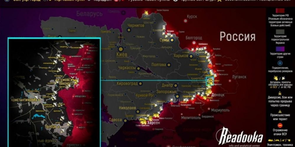 • Карта боевых действий на Украине сегодня 22.04.2023 в реальном времени на сейчас