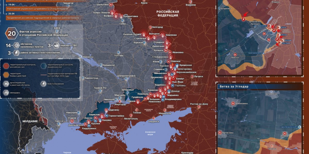 • Последняя обновленная карта военных действий на Украине сегодня, 22 апреля 2023