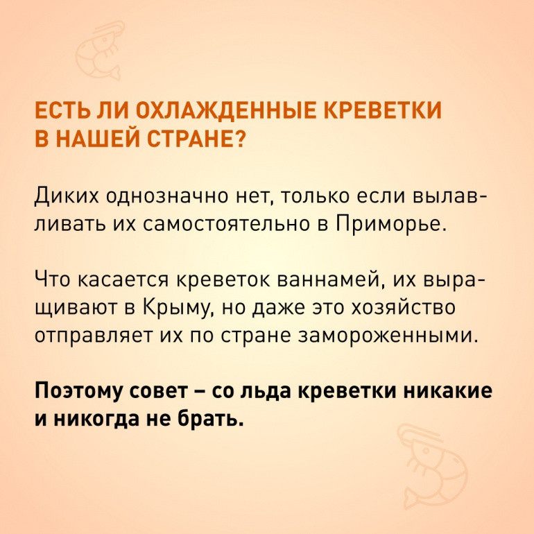 Ещё один совет Светланы Кротковой — никогда не брать креветки со льда. Объяснение — на картинке.