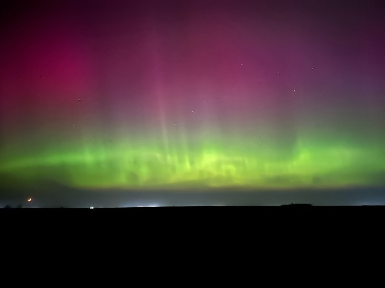 Небо над областью осветила Венера — планета подобралась очень близко к Луне. После чего небо, как на крайнем севере начало сверкать и переливаться яркими красками вследствие сильнейшей магнитной бури. Многие успели запечатлеть редкое явление на ясном вечернем небе.