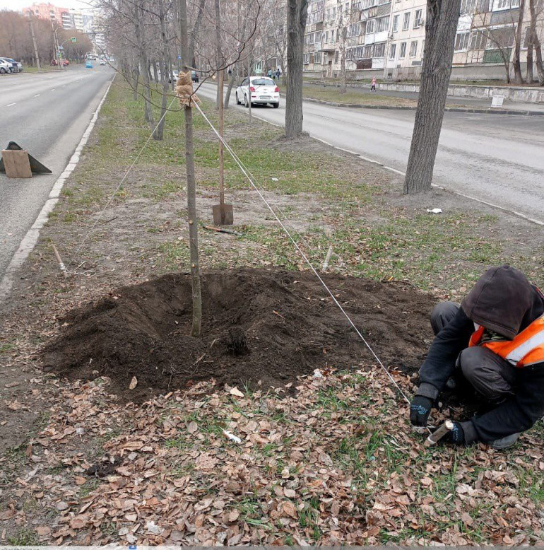 С приходом весны в Челябинске возобновился сезон благоустройства. Специалисты выкорчёвывают старые пни и высаживают молодые деревья. На северо-западе города уже высадили 15 новых деревьев. В понедельник, 24 апреля, рабочие высадят ещё 32 дерева. Об этом сообщили в городском комитете дорожного хозяйства.