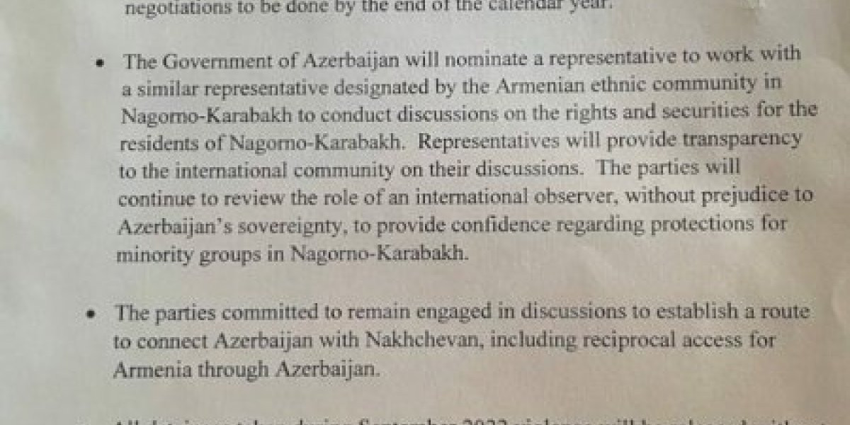 10 октября телеграм-канал «СИЛОВИКИ» опубликовал фотокопию секретного документа об урегулировании конфликта в Карабахе, составленного Госдепом и обсуждавшегося как 27 сентября в Вашингтоне, так и 6 октября Пашиняном, Алиевым и Эрдоганом в Праге: «Карабах остается в составе Азербайджана, местные армяне могут обсуждать свои права лишь со спецпредставителем Баку. Понятно, что это будут формальные обсуждения с перспективой ассимиляции [или исхода – Прим. авт.] местного армянского населения. Власти Армении, судя по всему, не просто готовы к этому, но и считают [это] своим достижением». В случае если Ереван окончательно закроет «карабахский вопрос» (что оставалось долгосрочной целью Пашиняна, как политика, тесно связанного с первым президентом Армении Л. Тер-Петросяном, и стоящих за ним кругов), вывод российского миротворческого контингента из нынешней «армянской» части края станет лишь вопросом времени. Перспектива же нормализации армяно-турецких отношений поставит вопрос, как минимум, о корректировке, либо же о полном пересмотре российско-армянских договоров и соглашений военно-политического характера.
