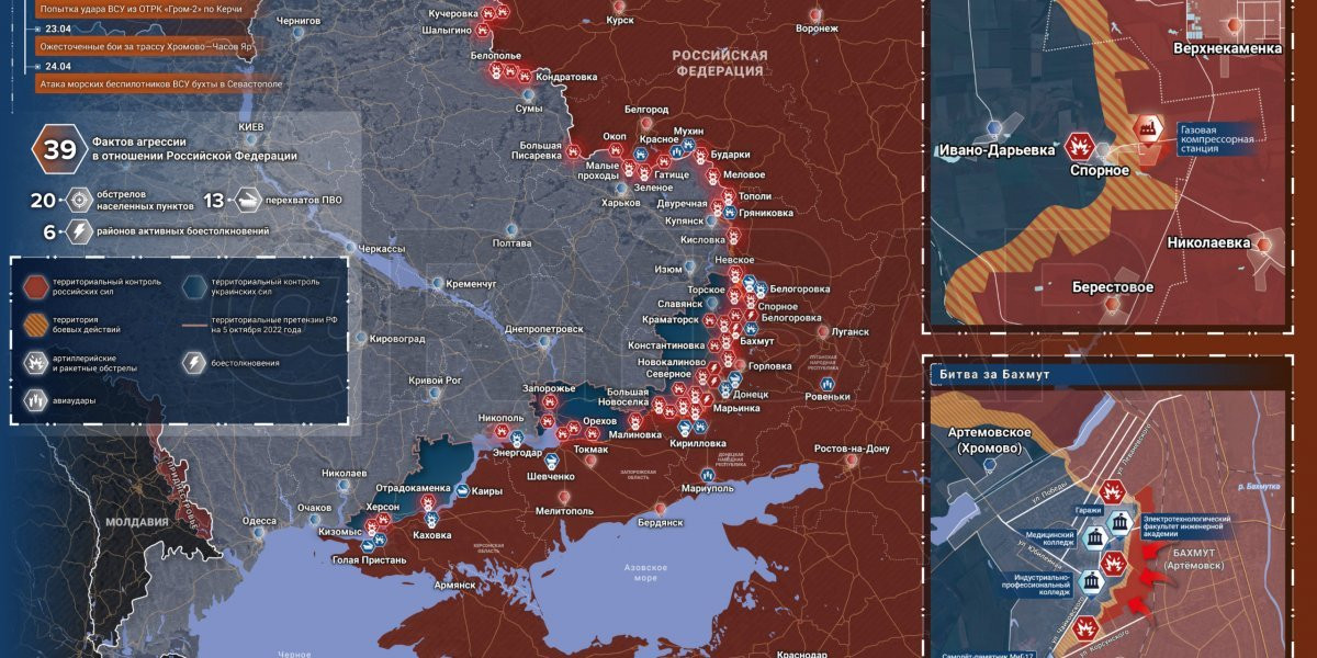 Боевые действия на Украине 26 апреля 2023: новая карта боевых действий на Украине 26.04.2023. Новая карта Украины