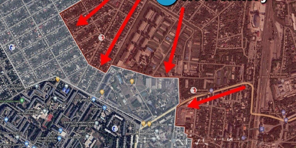 - В районе центра (на самом деле уже на западе) и на севере города «вагнеровцы» продвинулись по улице Леваневского, Соборной, Леси Украинки и в районе мясокомбината по той же улице Чайковского.