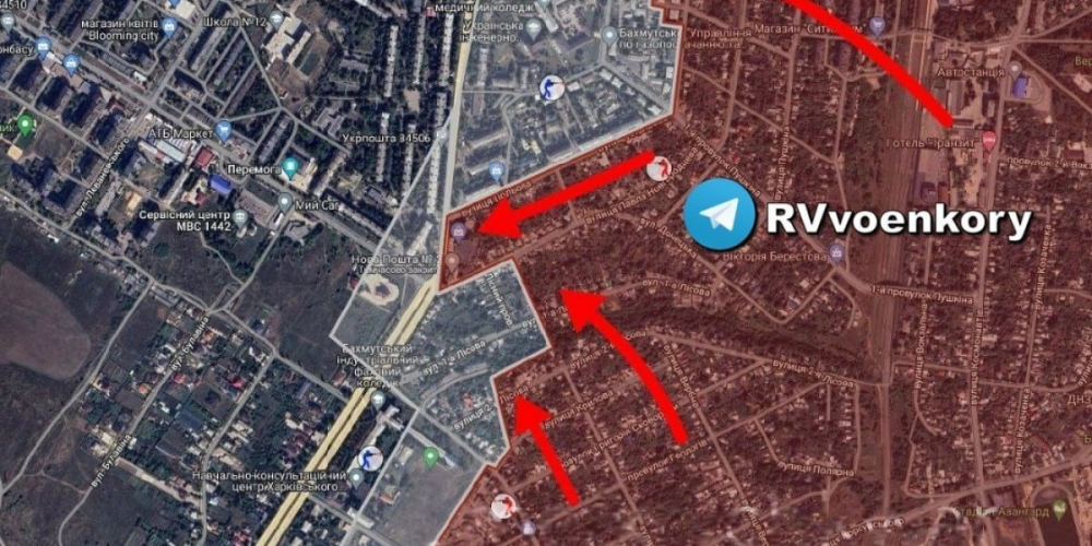 - В центре города «вагнерам» удалось выйти на улицу Чайковского, где сейчас идут тяжелые бои. По улице Павла Новгородцева и по улице 2-я Лесная «вагнера» интенсивно пытаются соединить две штурмовые группы, угрожая взять ВСУ в окружение, чтобы заставить украинские подразделения бросить позиции.