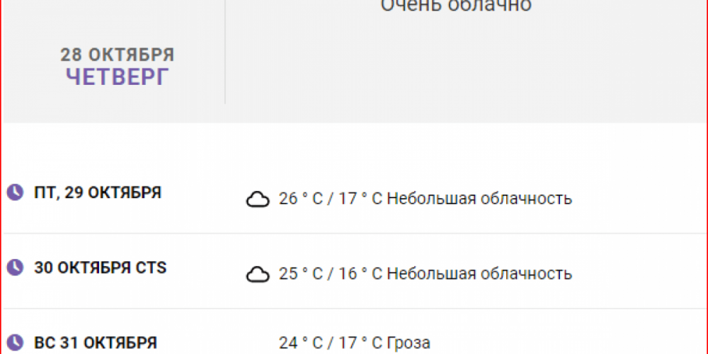 Вечером просматривая местные новости, специально решил заглянуть и узнать, какой прогноз погоды на ближайшие дни. Хочется всё-таки ещё в море искупаться.