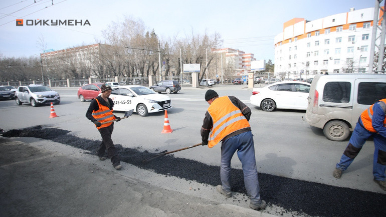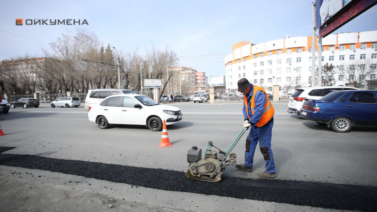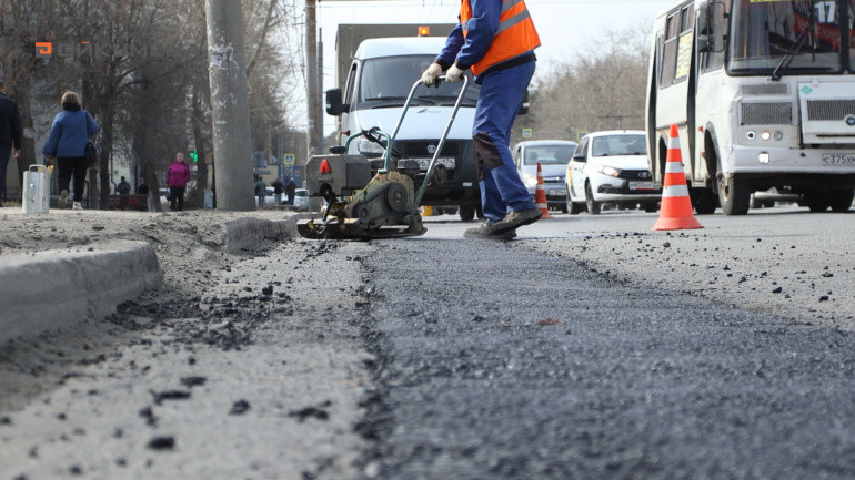 Ямочный ремонт с использованием горячего асфальтобетона в Челябинске стартовал в апреле, как только растаял снег и установились положительные температуры.