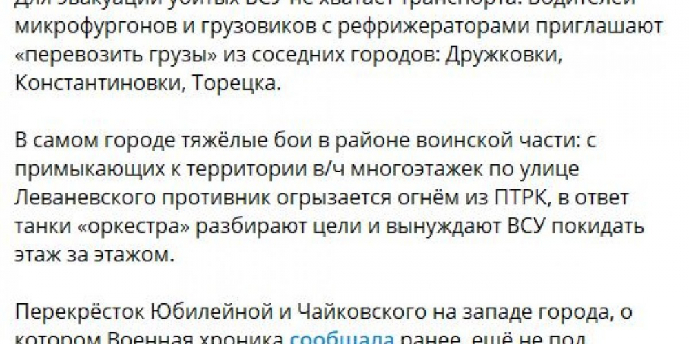 «Уничтоженных нашими войсками украинских военнослужащих и наемников не эвакуируют приблизительно с начала недели», – Марочко сослался на свои источники.