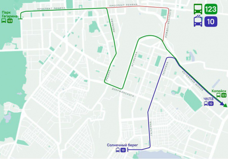Изменения действуют с 22 часов пятницы, 28 апреля, по 9 мая включительно. Движение от проспекта Ленина до Копейского шоссе на этот период будет ограничено. Поэтому 10-й троллейбус будет направлен от ЧКПЗ на Копейское шоссе, улицу Гагарина, затем Новороссийскую и «Солнечный берег».