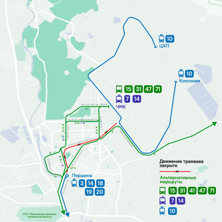 Пассажирам на время ограничений рекомендуют пользоваться другим транспортом до Металлургического района: автобусами № 15, 31, 41, 47 и 71, троллейбусами № 7 и 14 и трамваями № 10, на маршруте которого будет работать сразу восемь вагонов с интервалом 11–20 минут.