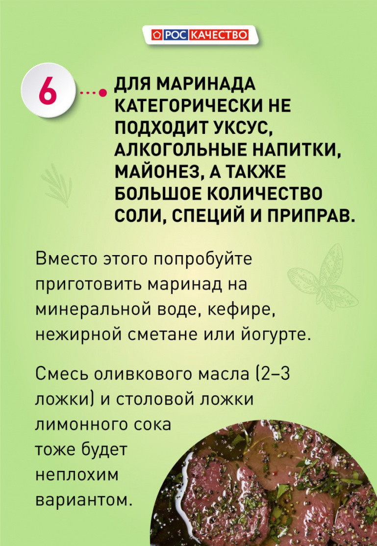 Для маринада наотрез откажитесь от уксуса, алкогольных напитков и майонеза. Также не нужно перегружать его большим количеством соли, специй и приправ.