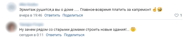 Отдельные пользователи не понимают, зачем в ущерб историческому наследию строить в непосредственной близости от старых домов современные здания, а также напоминают, что ситуация достигла беспрецедентных масштабов, и свидетельством этому стало разрушение главного музея города – Эрмитажа.