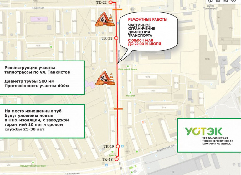 С 1 мая в Тракторозаводском районе Челябинска на два месяца ограничат движение транспорта