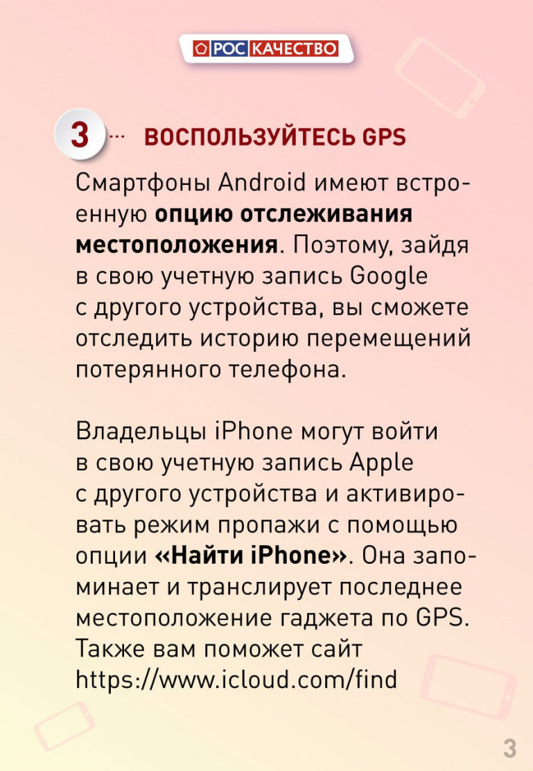 Как только вы поняли, что смартфон утерян или его украли, счёт идёт на минуты. Ведь сейчас в этих устройствах невероятное количество личной информации, вплоть до данных банковских карт, и всё это нужно немедленно защитить. Алгоритм действий предложили эксперты Роскачества.
