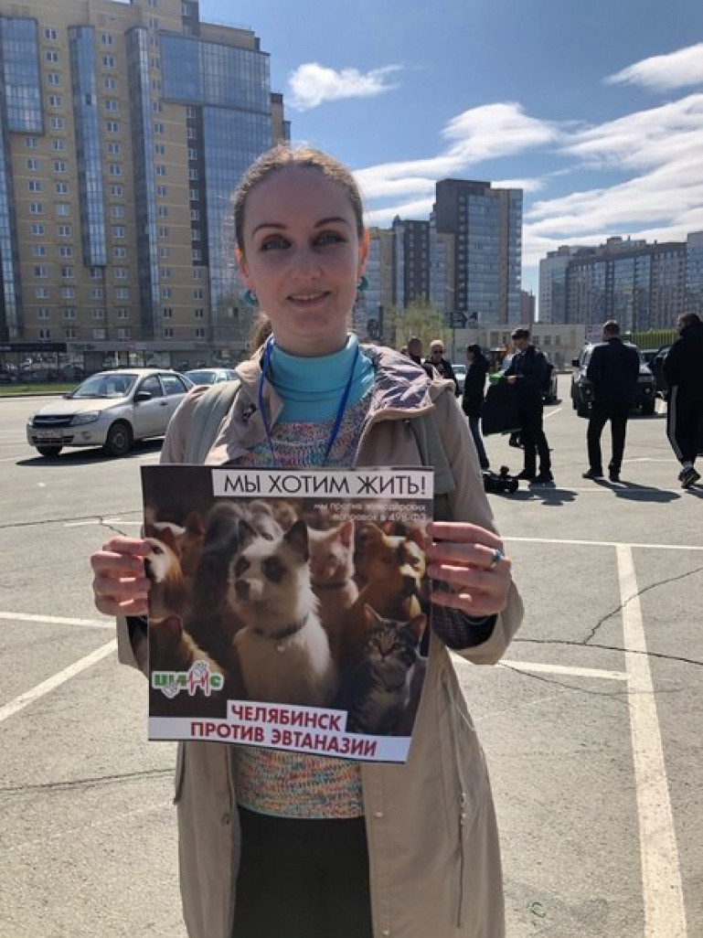— Мы против живодёрских поправок в 498-ФЗ, — отметила представитель зоозащитной общественной организации «Шанс» Светлана Григорьева, — На митинге в защиту животных выступили представители 16 региональных приютов для животных, — из Озёрска, Копейска, Пласта и многих других. Нам выделили место на дальней парковке ЛА «Трактор», поэтому случайных людей не было — все приехали целенаправленно.