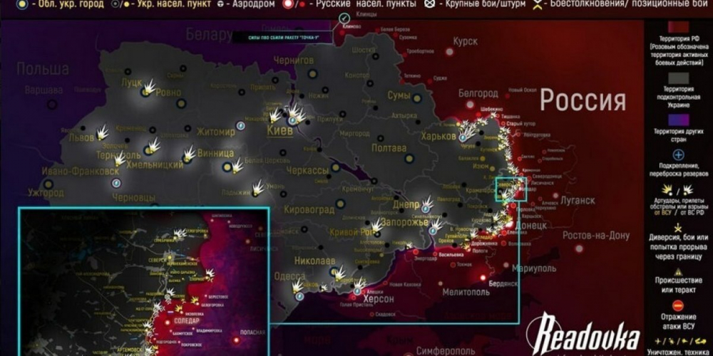 Представляем вашему вниманию последнюю карту боевых действий на Украине с городами и поселками.