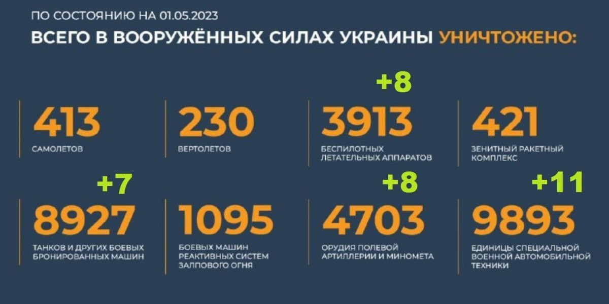 - Потери техники ВСУ на поле боя, что известно на сегодня 1 мая 2023 года