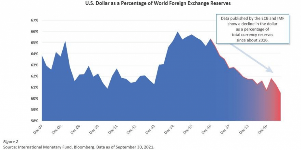 Дополнительным элементом, за которым следует следить, будет распределение валютных резервов глобальных центральных банков по отношению к доллару.
