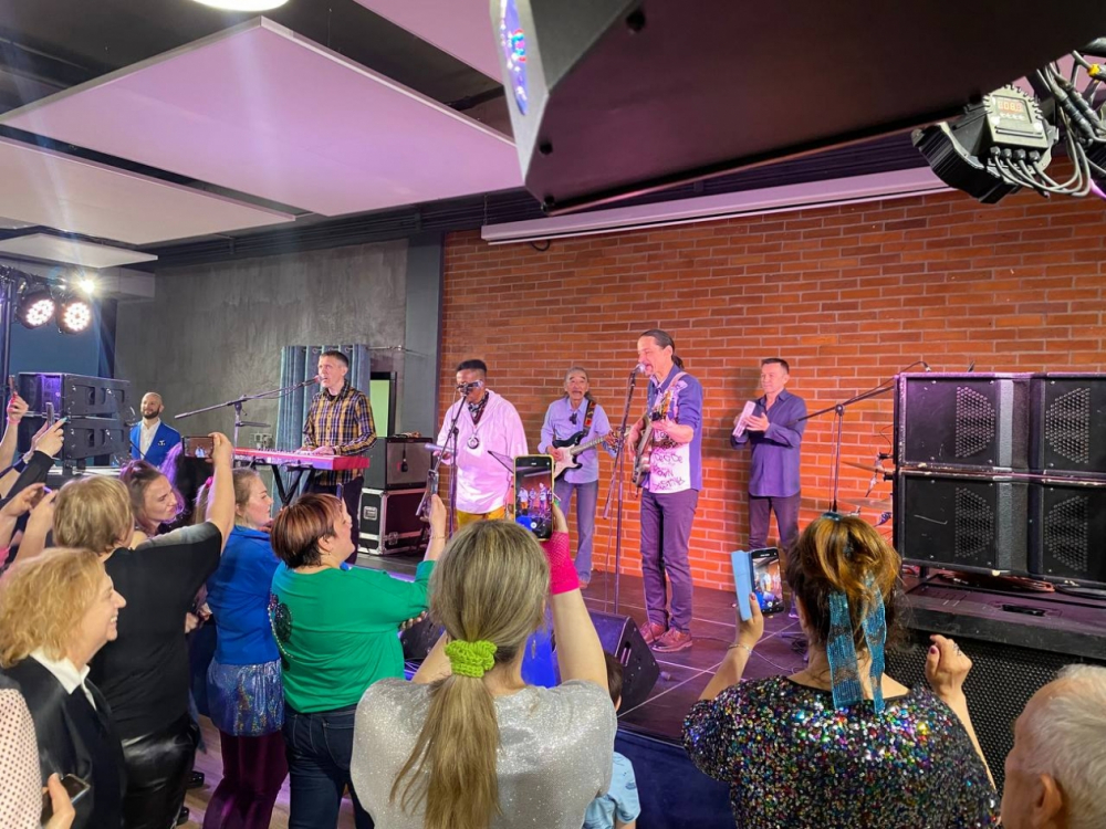 В завершении вечера удивила всех в живую исполнявшая обновлённый репертуар группа Blues Lime. Совершенно по-новому звучали хиты 80-х в их мастерском исполнении. Изюминкой программы стало живое импровизированное исполнение Стивена Митчелла с Дмитрием Кузеняткиным и группой Blues Lime под аккомпанирование на барабанной установке организатором и руководителем продюсерского центра К&М Викторией Колитенко, которой исполнилось 65 лет, песни Bee Gees — Stayin’ Alive.