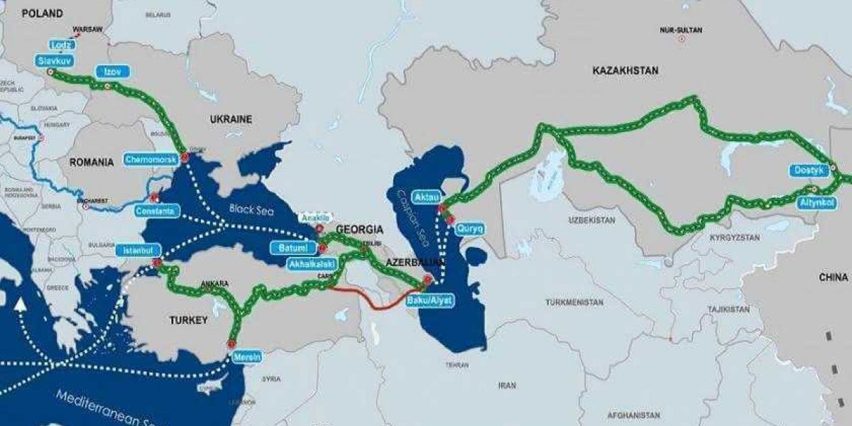 Маршрут Актау – Баку – Тбилиси – Джейхан. Это тот самый вариант транспортировки казахстанской нефти в обход России (Транскаспийский транспортный маршрут), о котором недавно говорил президент Токаев.